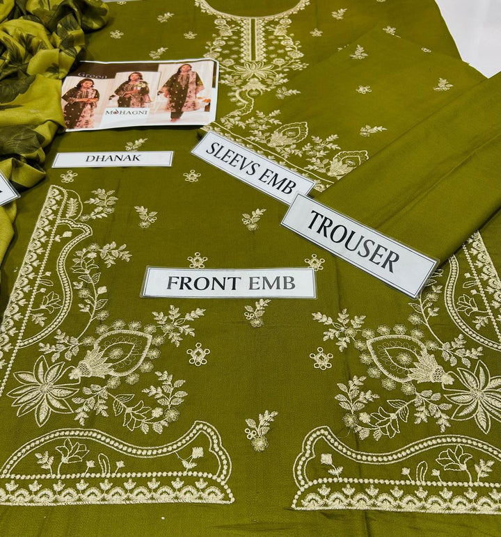 Wrap yourself in elegance with our 3 Piece Dhanak Embroidered Suit, a perfect blend of warmth, luxury, and timeless style. Designed for women who love sophistication with comfort, this outfit is crafted from premium Dhanak fabric and paired with a wool digital print shawl for a graceful finish.
